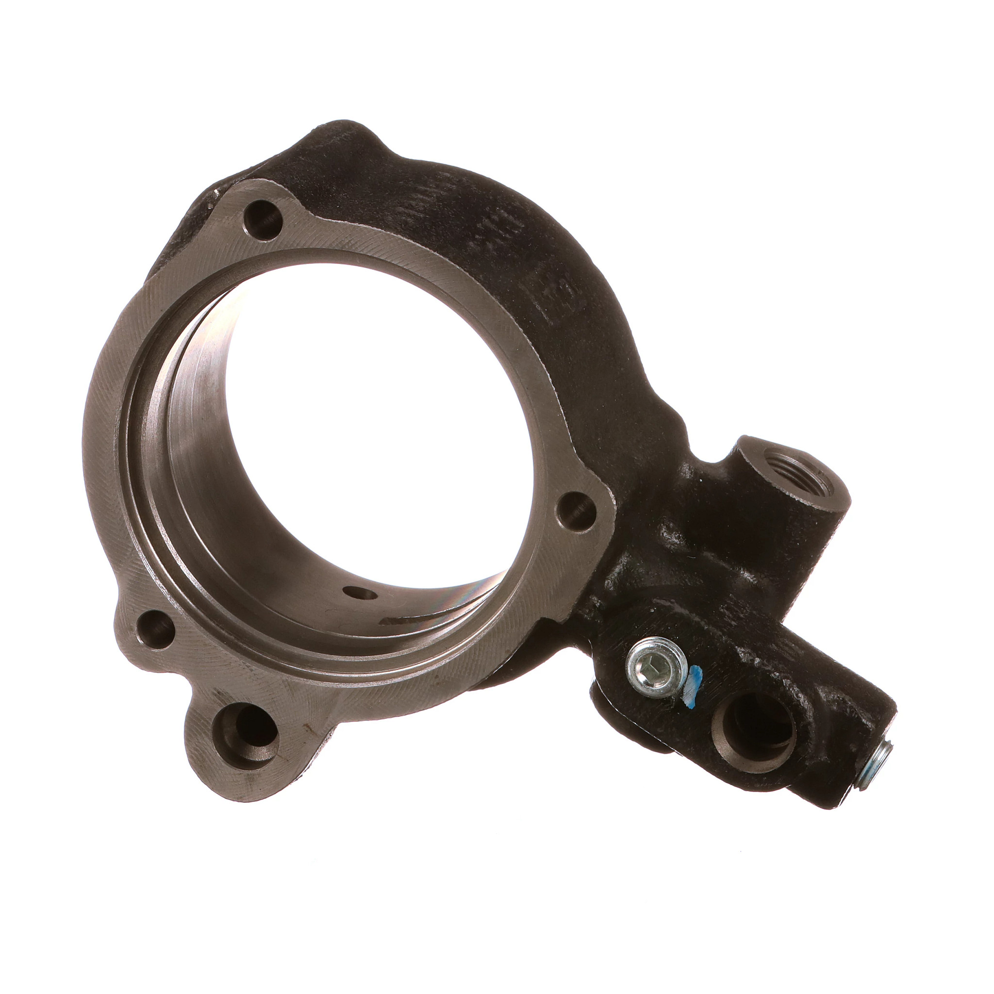 Power Shuttle Transmission Manifold #5181853 features two zinc-plated hexagon socket plugs that direct the fluid flow to the appropriate clutch pack.