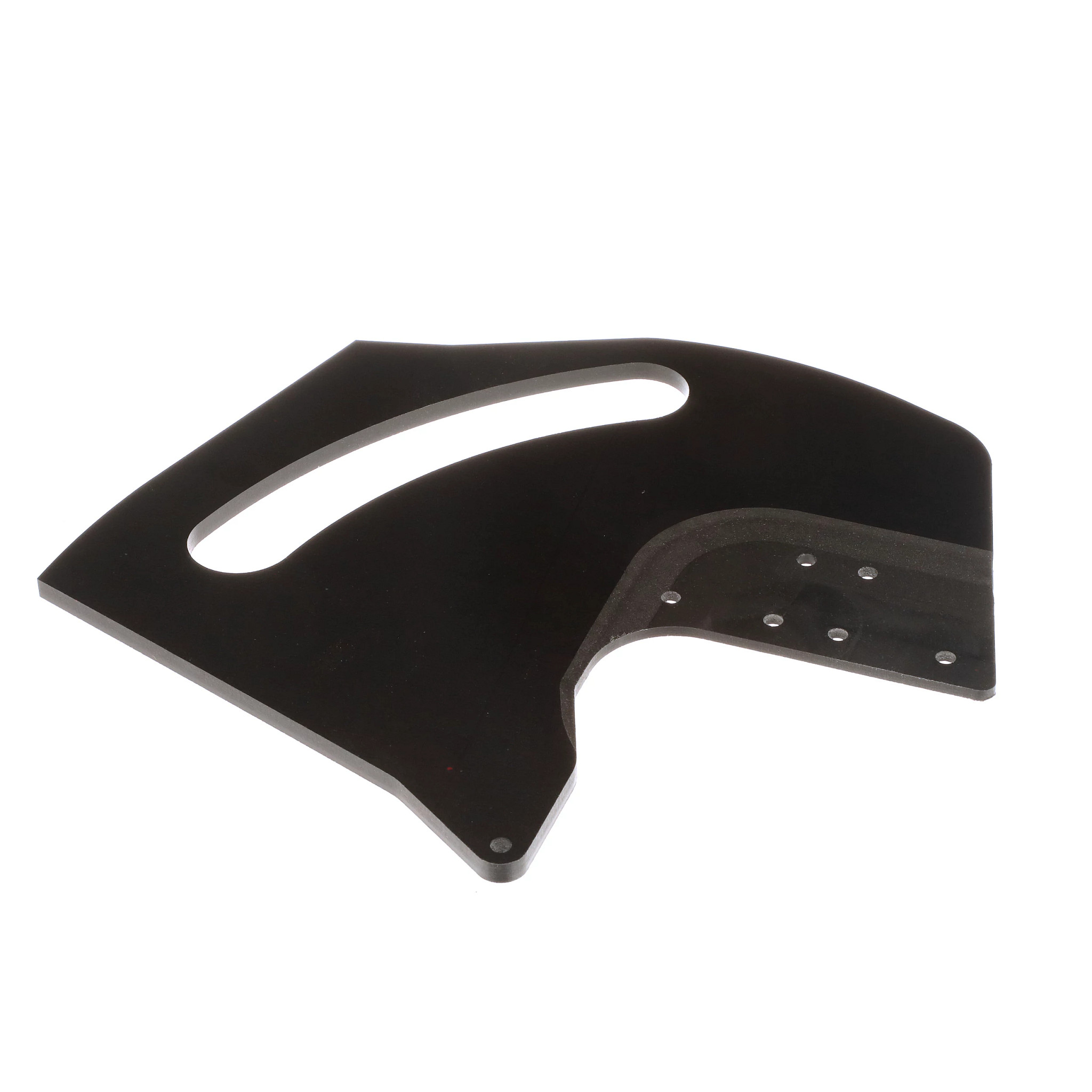 A aba #51670954 protege a caixa de velocidades de acionamento da faca da cabeça de corte. Possui seis orifícios para montar dois suportes.