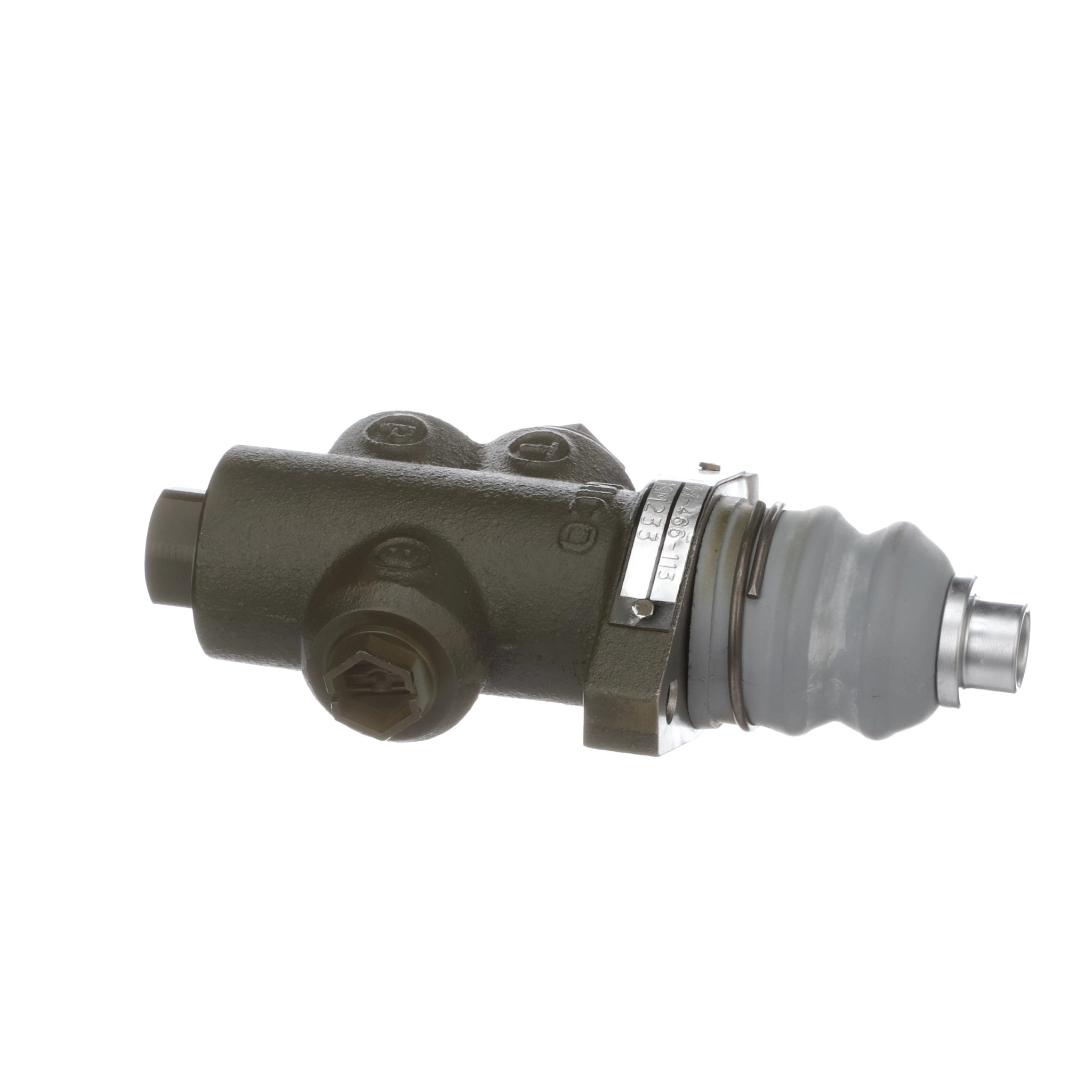 A válvula moduladora do travão #47754838 controla o fluxo de fluido no sistema de travagem do pulverizador. Um orifício permite que o fluido passe da bomba para a pinça de travão e outro orifício permite que o excesso de fluido regresse ao reservatório.