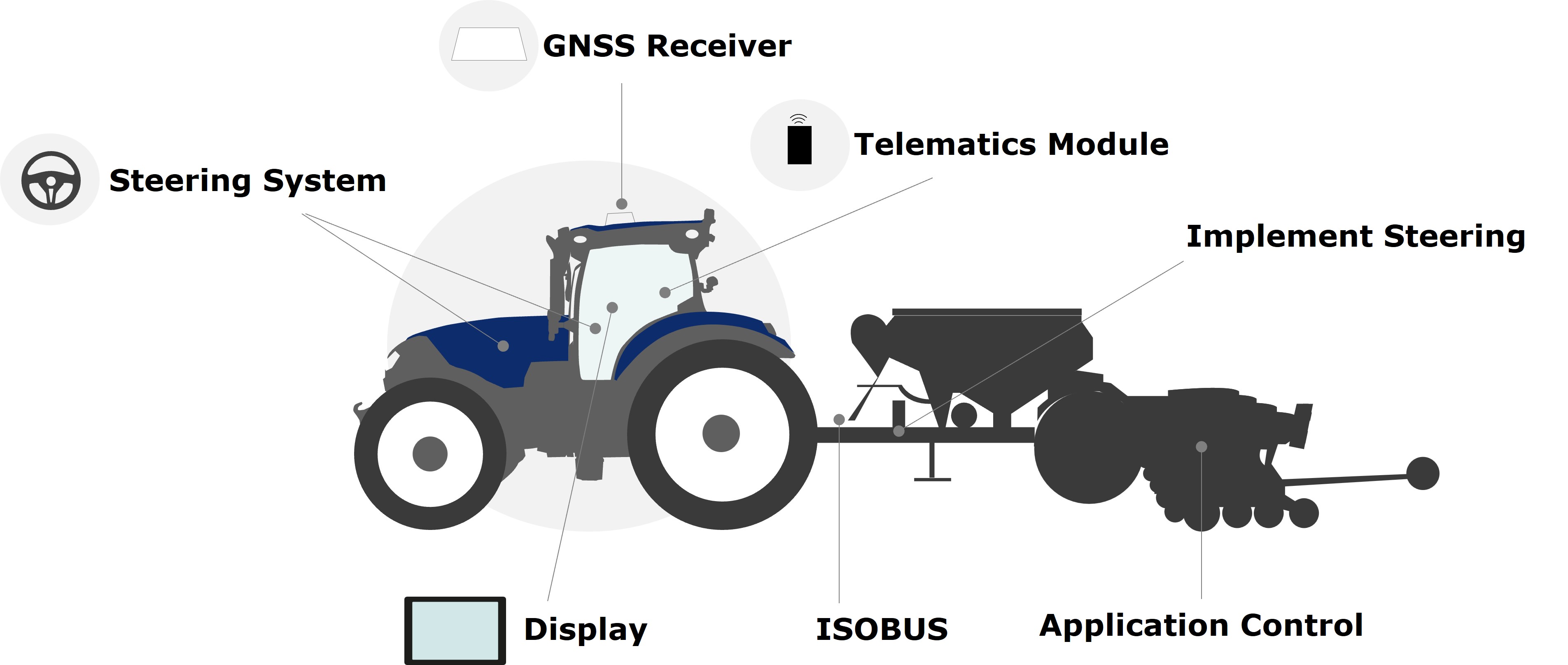 - + Aligns your tractor and implement on the same guidance line.